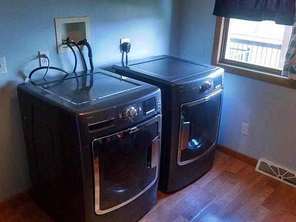 Well maintained 2 story 3 bedroom home with so many newer and modern updates. Large Eat-in Kitchen, first floor laundry, hardwood floors thru out main level, carpeted 2nd floor bedrooms, each bedroom has a closet, main roof is newer, new main entry doors new, gas furnace and H2O tank newer, walk out basement door to rear yard, covered carport with gravel driveway, side yard fire pit, well landscaped yard and an insulated 2 stall detached garage with newer roll up door.