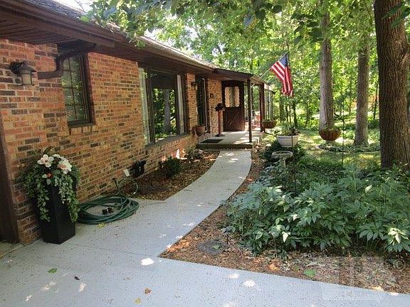 This ranch-style home w/brick/cedar exterior in Country Club area is tucked away providing privacy & views. Almost 2300 square feet on main level---vaulted ceilings, 2 master bedrms, open floorplan, private living rm, & private screened-in porch w/deck access--just a few of the amenities. Master-bedroom suite w/vaulted ceilings, private deck access, built-in cabinets, walk-in closet, & bath w/heated travertine floors, tiled shower, tub w/granite surround, dble sinks w/Corian counters. Second master bedroom/office w/walk-in closet, bath access, & sliding door to solarium. Hallway w/custom built-in cabinets overlooking the garden room. Main-level family room w/vaulted ceilings, fireplace, & great room open to the well-laid out kitchen w/hdwood floors, spacious pantry, & access to the screened-in porch. Living room w/views of the detailed landscaping. Hall bath w/main-level laundry. Lower level rivals main level w/a Family Room, 2 bedrms w/walk-in closets & ground level access. Much more