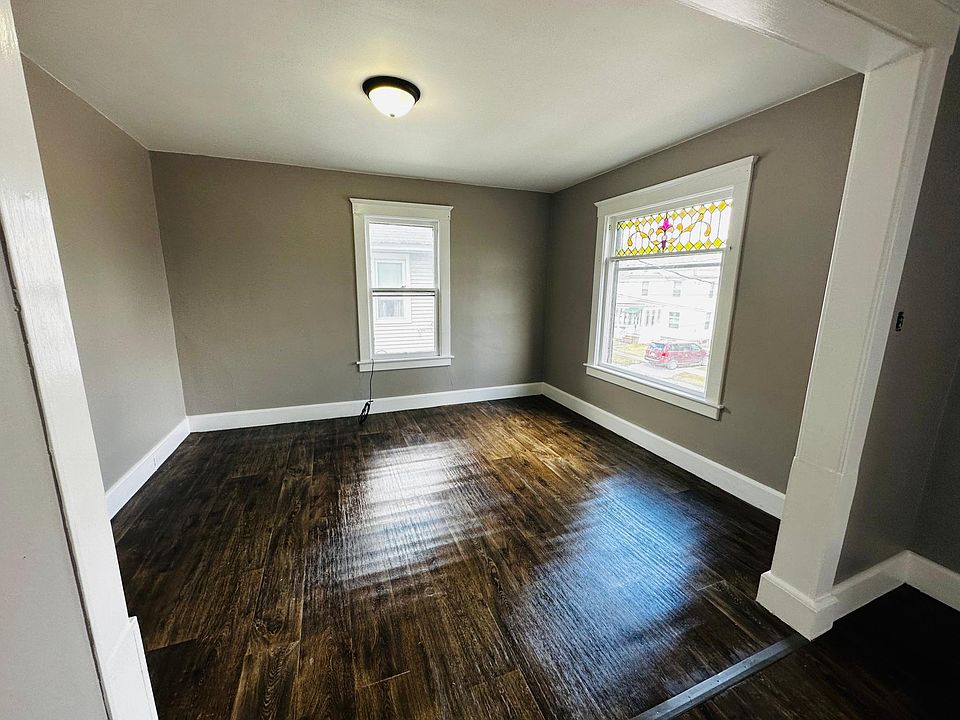 Newly updated! Spacious 3 bedroom 1 bath, second floor apartment. Large living room with bonus area attached, large dining room, l-shaped kitchen, and tile shower with tub. Closet in entryway and all bedrooms. Electric stove and refrigerator included. No laundry hookups. Electric/gas and water included in rent. Located in a quiet family neighborhood. Off street parking, no smoking and cats/small dogs negotiable with a $250 pet fee. One year lease required. First months rent and security deposit due at signing. Owner pays water and electric/gas. Security deposit and first months rent due at signing. One year lease required. No smoking, cats and small dogs negotiable ($250 pet fee required).