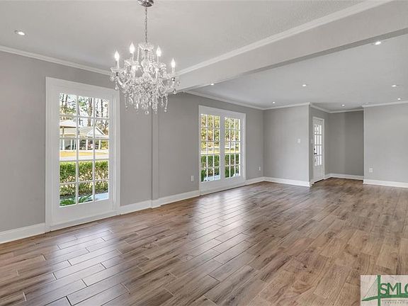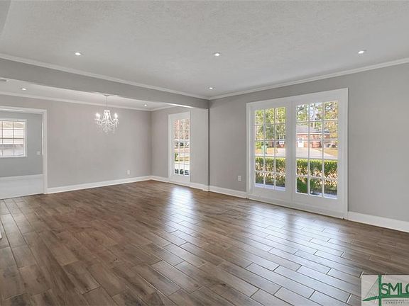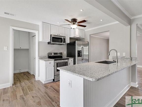 Only steps from Pooler elementary with four bedrooms, this completely remodeled, ONE STORY ranch home is perfect for anyone wanting to turn the key and move in. Modern, open floor plan with new, engineered hardwood flooring, new carpet, new kitchen cabinets, granite countertops, new stainless appliances and island with "farm style" sink. Separate laundry with pantry and two baths with tile, vanities, sinks and tub/shower surrounds. Large fourth bedroom offers privacy from the other bedrooms and has versatility to be playroom, den, office or flex space. An abundance of light with new windows and lighting brighten every room and cozy fireplace will warm you on cool nights.. Insulated outbuilding with electric in large, fenced in yard can be workshop, storage or finished as office or TV room.