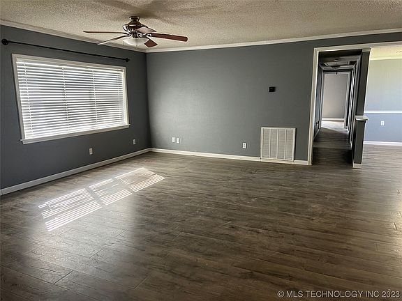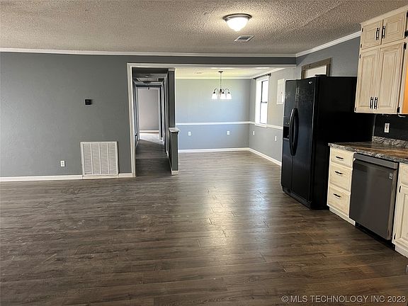 Small country town! This home was built in 2001 and has been completely remodeled. Open floor plan with new flooring, new counter tops, and fresh paint. Big, open yard with a storage shed and a privacy fence in the back. Home is within walking distance to the city park and close to the school.