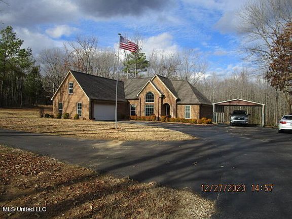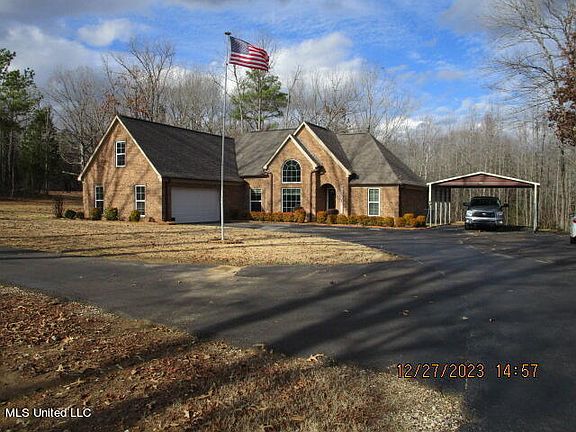 Beautiful brick home on 6+- beautiful acres. Home has a split bedroom plan 3 beds,2 baths, bonus room upstairs. Dbl Garage AT&T internet. Granite counter tops kitchen and baths. Eat in kitchen with custom cabinets and high ceilings. Lg living rm with high ceilings gas logs, built in book case. Master bath has a jecuzzi tub and separate tile shower, dbl granite vanity. Paved driveway, detached workshop with 110 & 220 wired. Covered concrete patio with wood picket fence. Also detached metal carport. Enjoy walking the trails through the woods. Only 20 minutes from Olive Branch, MS