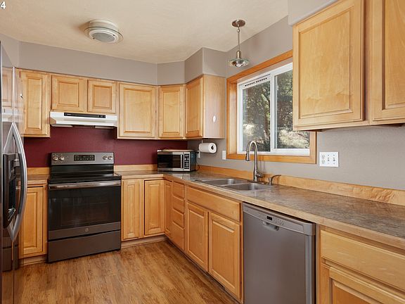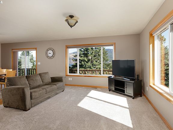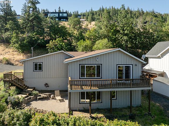 Take a moment to appreciate the stunning views of the river and Syncline from this beautifully remodeled 2128 sq ft home in Mosier. Situated on a private cul-de-sac and just a short walk from the captivating Mosier Creek Falls, this two-story home offers expansive vistas from nearly every room, as well as from the welcoming deck and patio areas. This well-maintained home features new windows and carpet, and a low-maintenance yard that overlooks Mosier Pocket Park.