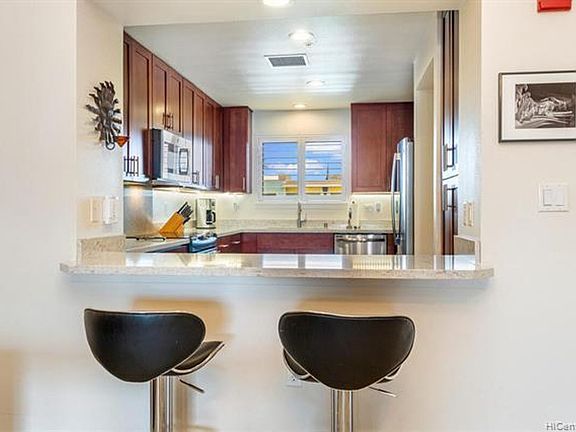 This spacious two bedroom, two bath suite at Ka Malanai is conveniently located in the heart of charming Kailua town within walking distance of great shops, restaurants and open markets. A well-designed kitchen offers new stainless-steel appliances, ample cabinet space and chic counter seating. The units spacious and open floor plan flows out upon a cool covered lanai inviting Kailua's predominant Tradewinds. Kailua's world renown beach is also just a short walk. Available September 1, 2025