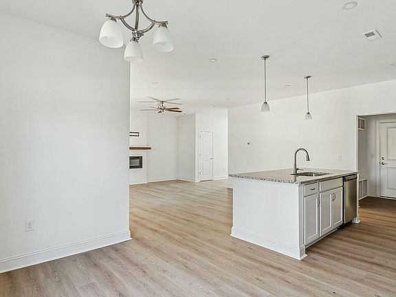Welcome to Shaws Landing! Ideally located close to downtown Southern Pines shopping, dining and entertainment. This thoughtfully designed Ascot home features an open foyer with abundant natural light and soaring high ceilings, leading you into the spacious living area. The open-concept kitchen is a chef's dream, with a large island, bright dining area, and a generously sized pantry for all your storage needs. The adjoined living room, flooded with natural light, is enhanced by a modern fireplace, creating a perfect space for relaxation.