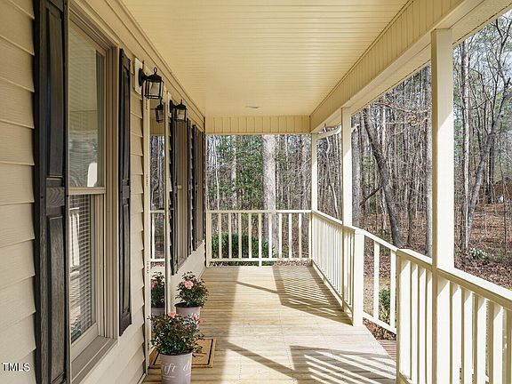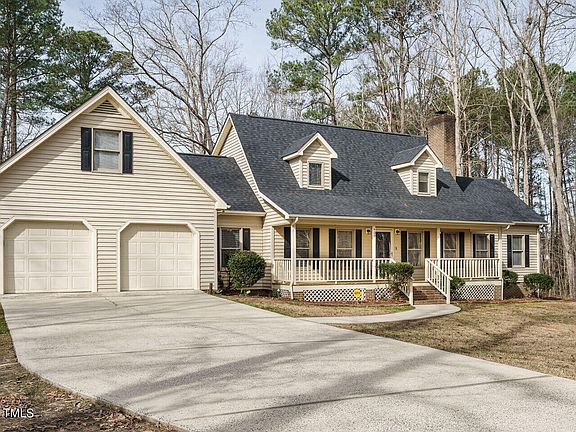 Amazing country setting outside the city limits. This wonderful cape cod home sits on just under one acre and has remarkable curb appeal. Enjoy the large rocking chair front porch and picturesqe natural area around. Home features first level primary bedroom and bath, large kitchen with breakfast bar and dining area, large family room with fireplace. Flex space could be great home office, large laundry room with sink. Finished bonus room will be added space for playroom, media room and so much more. Second level has two large bedrooms and full bath. Don't miss the huge floored attic space as well. Outside, enjoy the beautiful area, large deck, 2-car garage with extra storage space. Bring your chickens, the chicken coop and greenhouse will stay with the home. Roof replaced 2021, washer, dryer and refrigerator will stay with the home. Private road maintenance agreement just $200 per year. Enjoy the peace and quiet this community offers while convenient to US1 for commutes to Fort Liberty, So Pines, Triangle and more.
