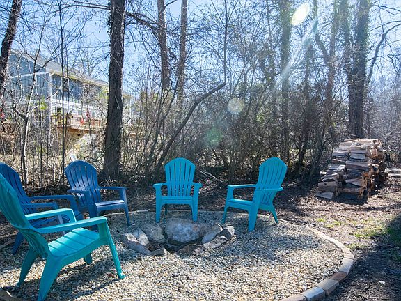 Enjoy Asheville's pleasant climate on the private back patio, complete with a gas grill for outdoor dining and a wood-burning fire pit for cozy evenings.