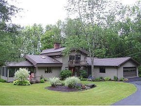 Lindal 2 Sty Cedar Home on 3.1 ac setting with 1/2 acre pond/waterfall,dual FP between entry & LR. HW flrs, lovely custom kit w/Maple cabinets,oak flrs & SS appl. Master Br suite w/FP & master ba, scr porch, extensive landscaping & flower beds, open flr plan, skylites/cath ceilings, upper deck 6x11, unique style & location, priv/quiet setting, enjoy the wildlife.Brand new septic 8/13.