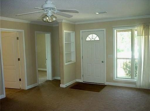 Enjoy quiet country living with this nice brick home with a Cedar front porch for a rustic feel. "Shotgun" floorplan, rear covered patio, 2.5 Acres, large rooms throughout, breakfast area, and walk in closets. Wonderful first time buyer opportunity with 100% financing (qualified buyers). Great buy!