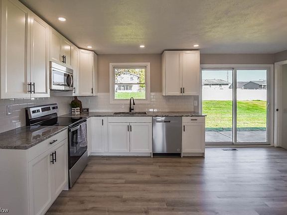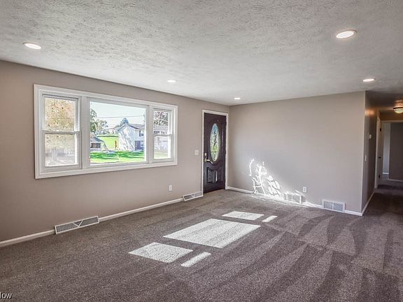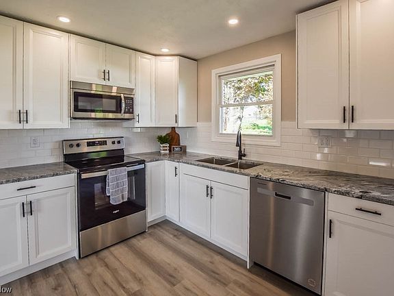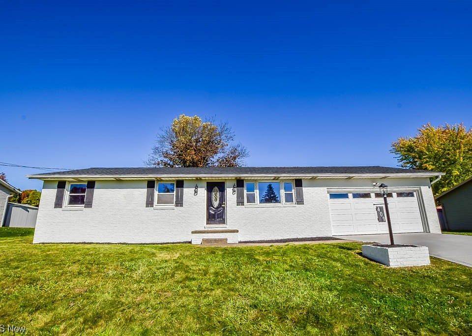 Come take a look at this beautifully updated brick-faced ranch nestled in a great neighborhood with convenient access to all amenities. On the main level, you'll find a host of recent improvements including new flooring, modern lighting, and tastefully neutral paint colors that easily complement any décor. The heart of this home is the brand-new kitchen, boasting bright white cabinetry, granite counters, a subway tile backsplash, stainless steel appliances, and durable vinyl plank flooring. Just off the dining area, a sliding door leads to a patio and a nicely sized backyard, ideal for grilling and enjoying outdoor meals. Down the hall you'll find three freshly carpeted bedrooms with ample closet space and a remodeled full bath featuring a tub with a tiled shower surround and a generously sized vanity with an integrated sink. The primary bedroom adds an extra bonus with its private half bath, complete with all-new fixtures. The full basement is perfect for storage or could easily be finished for more living space. An attached two car garage, vinyl windows, new roof and water heater add even more value to this affordable home. Call to take a tour today!