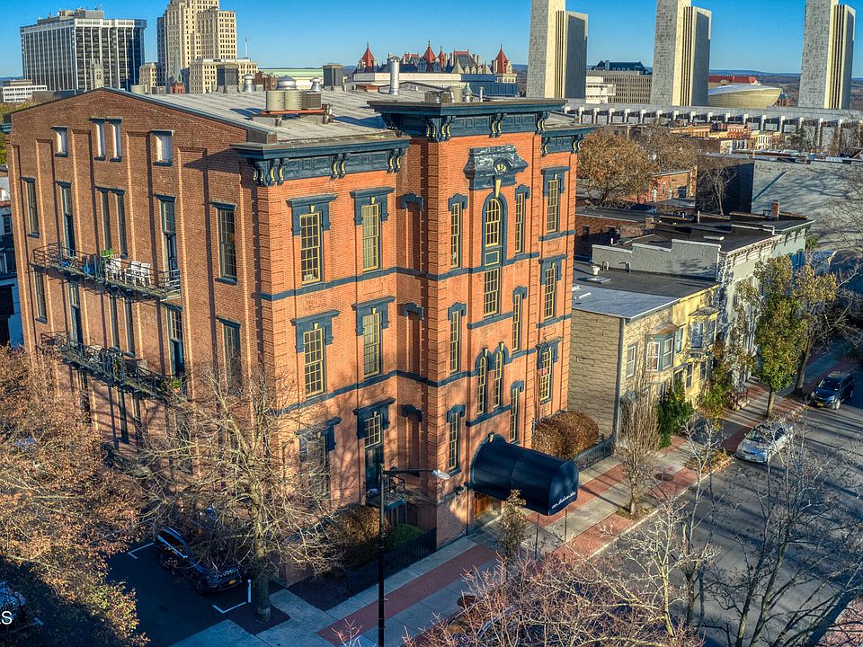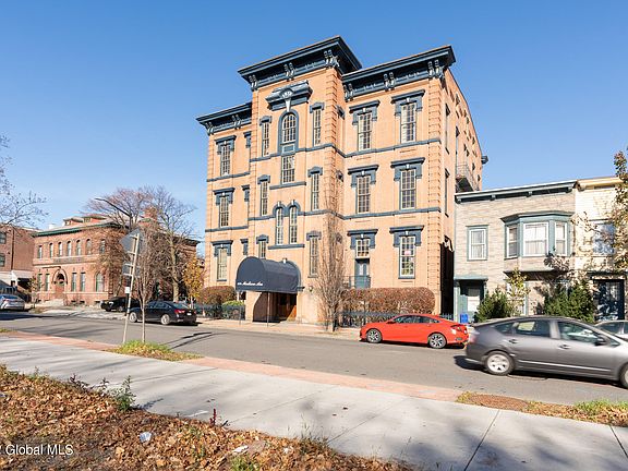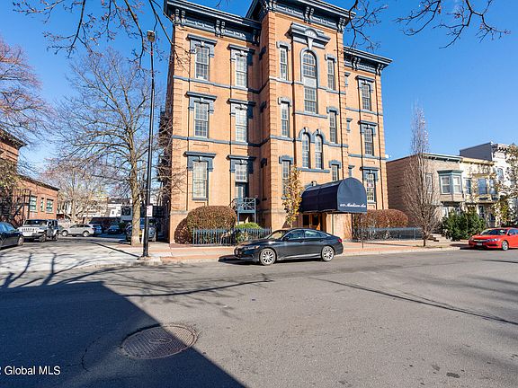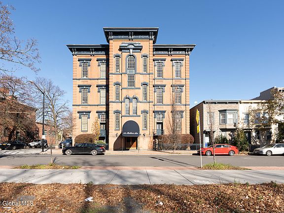 Designed by famed Albany arcitect Charles Ogden, this former school has been converted to a condominium building located within the desirable Center Square/Hudson Park/Washington Park neighborhoods. Just steps to Lark St, Albany Med, State/Legislative buildings, notable shops, eateries, nightlife, coffee stands, galleries & so much more. Desirable features include an open layout, high ceilings, oversized windows, original maple floors, updated kitchen/bath, central air, in-unit W/D, loft area, off-street parking, extra storage space in basement & terrace with spectacular views of the city skyline. Furnace & H/W tank a 1+ old only. HOA includes water, exterior maintenance & snow removal. Maintenance-fee living at its finest!