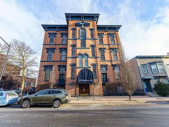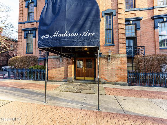 Looking for maintenance free living in the heart of Albany....well look no further! 409 Madison Ave, originally built as School 11 in the 1800s, was designed by the well-known Edward Ogden. This gorgeous building is now renovated into condos, one of which is a 2 bedroom/1.5 bath unit on the ground level and offers a large living room/kitchen area with open floor plan, spacious primary bedroom with ensuite, plenty of closet space, and gleaming wood floors throughout the common area. A major benefit to this unit is having two doors for points of egress, of which one leads to the exterior of the building. Dedicated off-street parking for your vehicle and conveniently located to local shopping, historical sites, Washington Park, popular Lark St, the Egg and so much more.