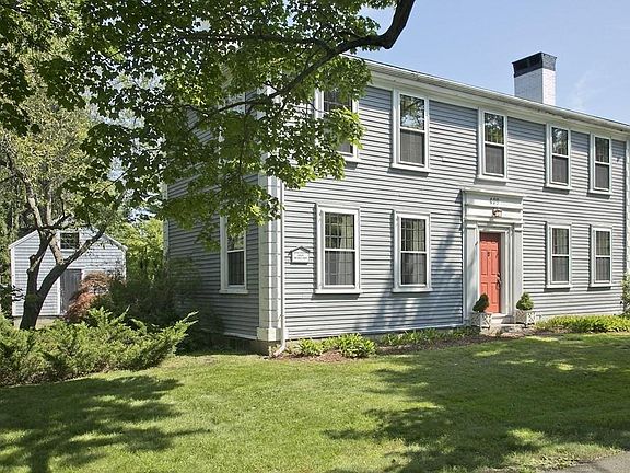 LOCATION, LOCATION, LOCATION!!!!! Experience living in coveted Hingham Centre surrounded by numerous conveniences including playing fields, tennis courts, library, schools, playgrounds plus bagel & cupcake shops! That is the location of this stately Georgian Colonial with 10 rooms, 5 bedrooms, and 2.5 baths plus an EXCUSITE, PRIVATE, LEVEL, backyard & patio. Period features include beautiful pine floors, a welcoming foyer, front and rear staircases, in addition to superb ceiling/crown moulding and chair rails. The high ceilings and well proportioned rooms, along with 12 over 12 windows and interior window shutters add to the ambiance of this treasured home. This local landmark is fondly known as the "flag house" in homage to the enormous American Flag that covers the entire front of the home on July 4th. A wonderful combination of a much loved family home with an exceptional parcel of land makes this a very rare and special offering!l