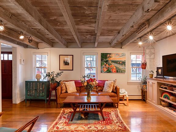 Nestled in the heart of the vibrant village of Rosendale, NY, this 1920's two-story home harmoniously blends historical charm with modern convenience, offering a serene retreat for those seeking both full-time residence or weekend escapades in the picturesque Hudson Valley. Meticulously updated and maintained, this 3-bedroom, 1.5-bath gem invites you with its artful vibe and distinct living spaces that cater to a variety of needs—from a home office to a creative studio, or a cozy nook for family activities. As you step inside, the residence welcomes you with warm wood burning stove, hardwood flooring, and rustic beamed ceilings that whisper tales of yesteryears while embracing the comfort of contemporary living. The heart of the home—a tastefully renovated kitchen— boasts new stainless appliances, custom cabinetry, and a chic subway tile backsplash, crafted to inspire culinary adventures. The thoughtful updates continue with new HVAC, upgraded insulation, new siding, new hardwood flooring, new doors, new decking and fence work, and refreshed bathrooms, ensuring a seamless blend of efficiency and style. Extremely low heating/cooling costs year to year only add to the appeal of this property. Upstairs, the living quarters offer tranquility and practicality, featuring sizable bedrooms, a convenient full bathroom with laundry, and ample hallway storage. Each corner of the home exudes care and attention, evident in the seamless integration of upgrades, making it one of the most desirable offerings in Ulster County. Step outside to experience Rosendale's Main Street allure, where the simplicity of village life meets the convenience of modern amenities. You're a leisurely stroll away from the local supermarket, a community library, local cinema, as well as an eclectic array of restaurants and artisan shops. The local recreation center, town pool, and the Trailways bus stop provide effortless living, allowing one to revel in the car-free lifestyle that city dwellers often yearn for. Location is paramount, and this residence delivers, placing you amidst the enchanting towns of New Paltz, Stone Ridge, Kingston, and Woodstock. Adventure beckons with the nearby Mohonk Preserve, Shawangunk Mountains, and Wallkill Valley Rail Trail, while local orchards, farms, and the Rondout Creek present endless opportunities to connect with nature. Ideal for the discerning individual seeking a high-quality, low-maintenance home, this property stands out as a rare asset in today's market. With its perfect blend of upstate country living and accessible conveniences, it's a turnkey solution for those who value their time to explore and enjoy rather than being bogged down by upkeep. The energy and fuel efficiency of this home is a blessing not to be taken for granted. The current stewards have elevated this home to a standard seldom seen in this range, making it not just a place to live, but a delightful treasure in one of Ulster County's best-kept secrets. Embrace the ease of life in this lovingly curated home, where every detail ensures that it's not merely a residence but a sound long term investment, and a celebration of the Hudson Valley lifestyle.