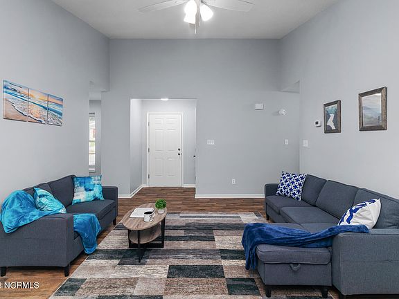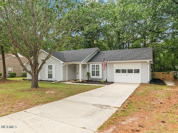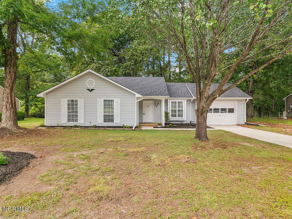 Welcome to the heart of Jacksonville! This exquisite 3-bedroom, 2-bathroom home has been meticulously renovated to perfection, tailored just for you. Immaculately upgraded with new laminate wood flooring throughout, fresh paint, pristine countertops, modern toilets, a brand-new roof, HVAC system with warranty, top-of-the-line appliances, and more. As you approach your dream home, you'll be captivated by its curb appeal and beautifully landscaped yard, adorned with majestic mature trees. Upon entering, be prepared to bask in the abundance of natural light that fills the living room, enhanced by a charming fireplace. The thoughtfully designed kitchen boasts all-new stainless steel appliances and a tastefully done tile backsplash. And just off the kitchen, you'll discover a spacious laundry room equipped with a washer and dryer, providing utmost convenience. The primary bedroom offers a luxurious en-suite bathroom and a walk-in closet. Two more well-appointed bedrooms complete this dream home perfectly. Step outside onto the sizable fenced yard, where you can envision hosting memorable BBQs and gatherings with your loved ones. Don't miss out on the chance to claim this captivating home as your own. It's ideally situated, close to shopping centers, base, and the breathtaking North Carolina beaches. Schedule a visit today, and seize this incredible opportunity before it slips away!
