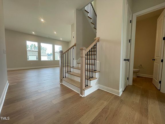 Don't miss out on this finished new construction home located within a cul-de-sac!! Location provides a quiet surrounding, great front yard, and additional distance between your house and your neighbors. Perfect set up in this 4 bedroom house with a great open layout, soaring 10' ceilings, and 1st floor office. Eat in kitchen, island for entertaining & sink looking out into the backyard! Upgraded stainless steel appliances. Beautiful quartz kitchen countertops. Electric fireplace. Wide plank laminate flooring throughout all of the 1st floor of the home, hardwood staircase stained to match & laminate continuing into the upstairs hallway. Frost white quartz countertops in your primary bath with a double vanity & large tile walk-in shower. Smart home features added throughout the house. AMAZING LOCATION!! Don't miss out on this new community nestled in-between existing neighborhoods in a beautiful quiet and convenient area! Only 5 miles from downtown Wake Forest. 3 miles from multiple different grocery stores, shopping & dining.