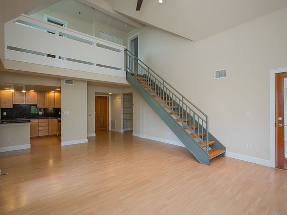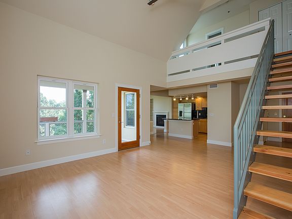 2 story loft adjacent to Lee Martinez Park. Beautiful finishes with open floor plan, built-in shelving, vaulted living room, beautiful kitchen with cherry cabinets and stainless steel appliances, wood laminate flooring on main level and private deck. One car detached garage for extra storage.