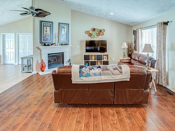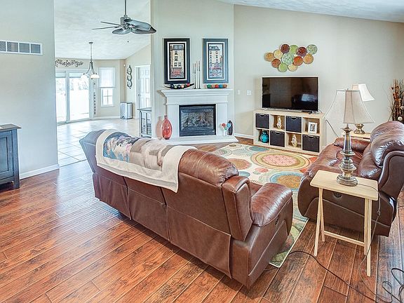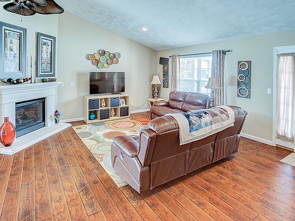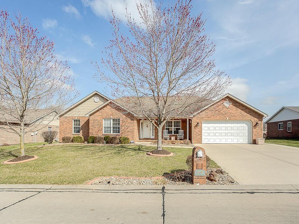 IMMACULATE, well-maintained, beautiful brick ranch in Woodridge Estates. Enter the front door from a covered porch to an open and updated spacious living room with laminate wood flooring, vaulted ceilings and a gas fireplace. The huge eat-in kitchen offers an abundance of cabinet space, backsplash, newer stainless appliances, pantry, and space for a large table. Off the kitchen is a laundry room complete with a utility sink. New sliding glass doors lead to a private covered patio and big backyard with a vinyl privacy fence. The home also offers a large master bedroom with a walk-in closet, master bath with dual sinks and oversized shower, two guest bedrooms and bathroom. The amazing amenities continue with a finished basement to include a family room (pool table stays), fully equipped exercise room, bedroom and full bath (jacuzzi tub) and storage space. There is an oversized 2 car garage with an abundance of enclosed storage space. The yard is perfectly landscaped! Move-in ready!
