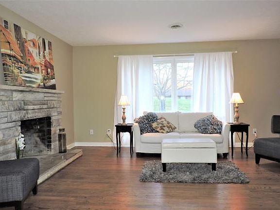 Beautifully remodeled home with 3 bedrooms 1.5 baths & mostly finished basement. Gleaming refinished hardwood floors, new flooring in basement, fresh, neutral color paint, spacious kitchen with lots of cabinets, all stainless steel appliances, open floor plan and 2 brick fireplaces, one in living room & one in den. 2 car carport. Low maintenance brick home with large, fenced back yard and new back deck. Much to offer! Seller will provide a 1 year home warranty!Lease with option to buy available: $6,000 down, $1,100 per month, up to a 3 year term. Option payment is non-refundable but applies towards principle if closed within the option period. None of the monthly rent applies towards principle.