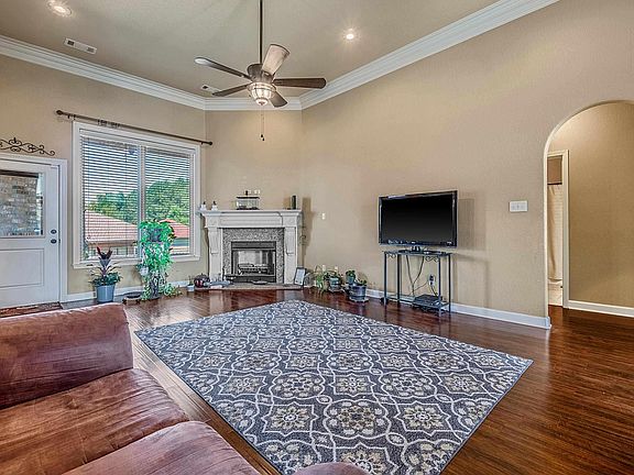 Beautiful open floor plan home with a formal dining area. Kitchen offers breakfast bar, granite counters, great cabinet storage, gas range and beautiful stained cabinets. Main bedroom is an awesome size with the main bathroom having a shower and jacuzzi tube and nice counter space. Back patio is covered with a nice fireplace. This home is also close to shopping and access to the interstate. Call today to see this home. Agents see remarks.