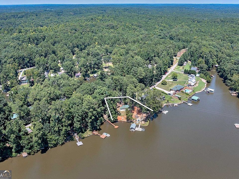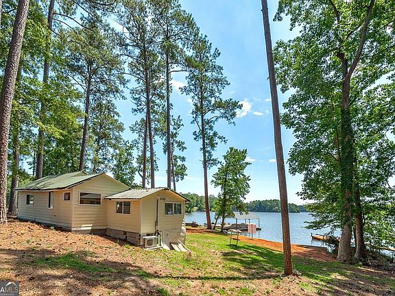 DEEDED, WATERFRONT ON JACKSON LAKE! This cabin has been completely renovated. From the foundation to the ceiling, it is new. Wonderfully flat to the water lot with a boat ramp, 250 feet of seawall, and two floating docks. Amazing BIG WATER VIEWS!! The is a tiny house with one bedroom and one bath. The living room has two sleeper sofas. The home sleeps 6. Here is your weekend getaway. All appliances including stack washer/dryer and all furniture, kitchen utensils, dishes everything stays with the property. This is 4 lots being all sold together. Come enjoy it as it is, then make additions to accommodate your crew. It's perfect for a short term rental, airbnb/vrbo.