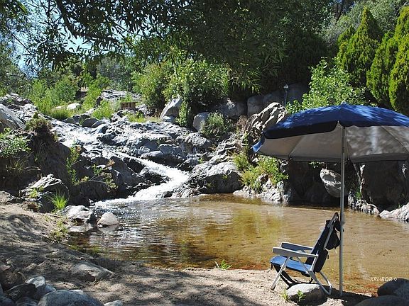 This is absolutely the "Premier Location on Tillie Creek"! Rushing Waterfalls, Pools, & a Sandy Beach! There is over 700 feet of "Prime Creek Frontage! The Home is loaded w/ "Charm & Character" The main level inc. LivRm. w/ rich wood beamed ceiling & accent wall, corner stone hearth & wood burning stove, view windows on 3 sides plus patio door to a full length covered front porch! THE VIEWS ARE AMAZING, THE COVERED FRONT PORCH HAS A TREE HOUSE EFFECT! The kitchen is fully equipped w/ S.S. KitchenAid Appliances, Custom Wood Cabinetry, Beautiful Tile Counters & Backsplash! VERY NICE! The Full Bath inc. Kohler Tub w/ Custom Tile Shower, Wood Cabinetry, Elongated commode. A Deluxe Laundry Rm. completes the main level. The main Bedroom, upstairs is very private & features a vaulted ceiling w/ fan! the adjoining den/sitting room can also serve as an overflow sleeping room. The downstairs bedroom is also very private & inc. an office alcove. An additional exercise/sleeping room completes this level. BRAND NEW ROOFS! Detached, Over-Sized, 960 Sq. Ft. Garage/Shop, Private Well, Horse Zoning w/ corral... This property is a "True Natural Wonder"! Old Growth Cottonwoods! Granite Boulders! Wow!