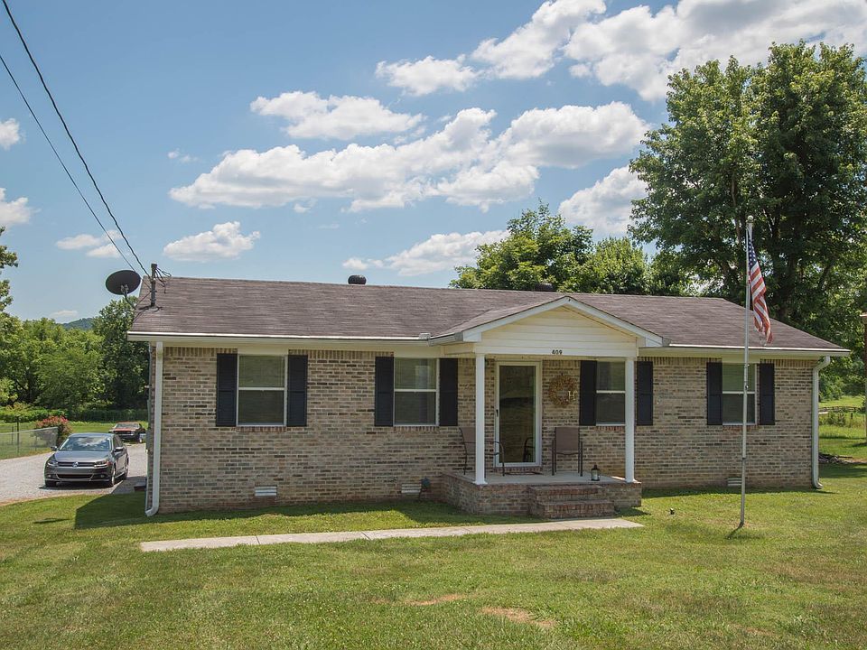 Great all brick 3 BR, 1.5 bath home w/ covered back porch and detached 2 car shop/garage. 100% Financing available with Rural Development.