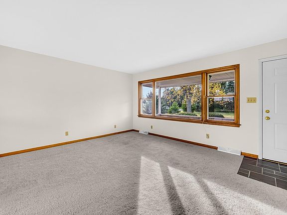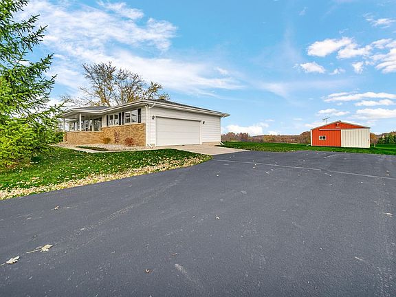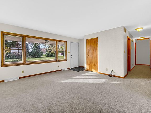 **MULTIPLE OFFERS RECEIVED, HIGHEST & BEST BY 9AM SATURDAY NOVEMBER 11,2023.*** Welcome Home! Perfectly situated on 1.74 acres of land this ranch home is ready for instant enjoyment. The main level features a large living room with brand new carpeting that flows down the hall and into the 3 good sized bedrooms. The Master bedroom is attached to the bath. There is a full hallway bath. The kitchen has plenty of cabinet and counter space, appliances that stay, and convenient eat in dining area. The mostly finished basement has a large L shaped rec room with dry bar, bath, and what could be used as a 4th bedroom (no egress), office/craft room or whatever fits your needs. There is plenty of storage space in the utility room and a room that would be great for canning storage. There is a whole house fan and iron reducing water softener and filtration system. The HUGE 2.5 car attached garage is heated. Let's not forget about the pole barn! It's a 24X32 with concrete and electric.