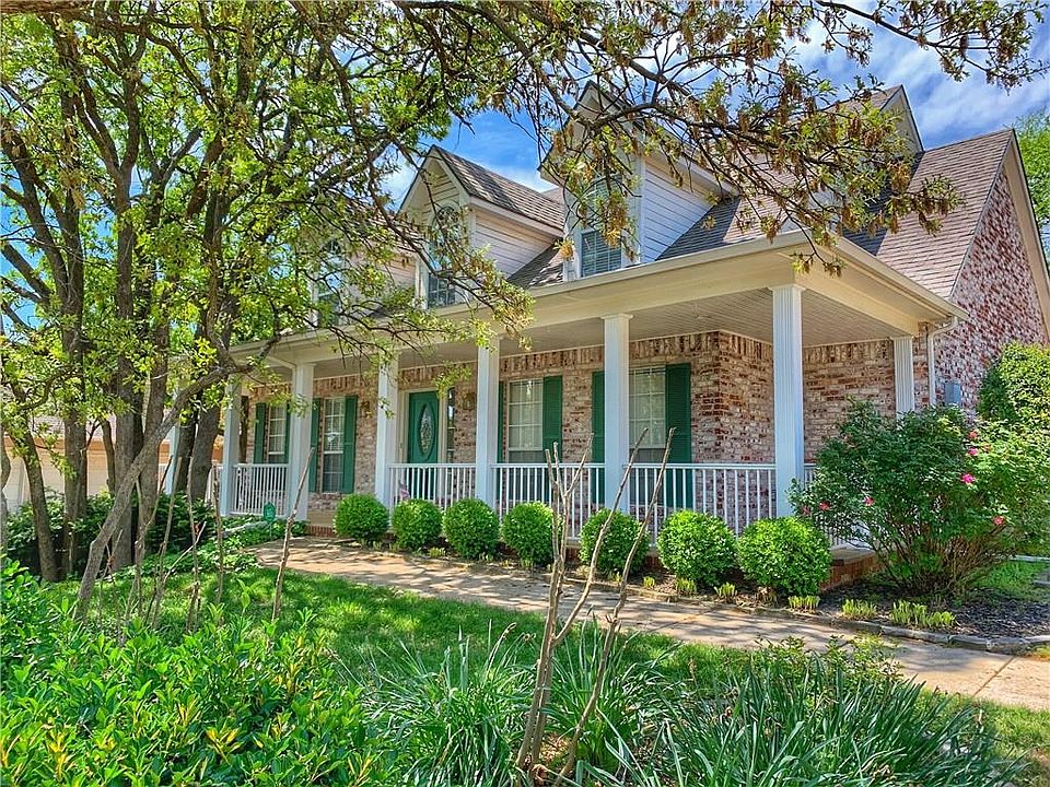 The beloved Bradbury Corner is located off I-35 for quick OKC access, and right on 2nd Street leading into the heart of Edmond. With charming curb appeal, this home has been lovingly maintained. A sweeping staircase just off the entry creates a high ceiling foyer with the formal dining adjacent. The living space is clad with massive built ins for the tv with bookshelves flanking. A brick fireplace adds comfort and style. The fully equipped kitchen features a walk in pantry and bar spaces overlooking both living and breakfast. An inviting master suite is on the main floor and offers a large master bathroom with separate shower and tub. Upstairs a large landing could flex to multiple purposes and connects three spacious bedrooms, one full bath and bonus storage. The three garage is setup to house your cars and equipment both. While the back, a magic garden feel starts with brick patio, a canopy of threes with filtered light, and beautiful foliage. Welcome Home!