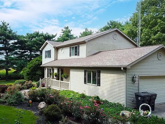 This lovely home sits in the middle of 1.65 landscaped acres with no close neighbors ( the neighbors to the south and west are corn and beans) The foyer is bright and welcoming. The kitchen is beautiful with lovely quartz counter tops', top of the line stainless steel appliances, an island for added prep area , a pantry and vinyl planked flooring. The kitchen flows in to the large great room that offers a beautiful fireplace and hand scraped wood floors. There is an abundance of windows to let the light in. Also on the main floor is the 4th bedroom that is currently being used as an office. Also on the main floor is a bath with a shower. Upstairs are 3 more spacious bedrooms, master bath with double sinks and a large walk in closet. For you convenience the laundry room is upstairs. Outside there is a 24x24 detached garage with a 20x20 lean to on the rear with a stall. The rear part of the property offers a large fenced in area with access to the stall.