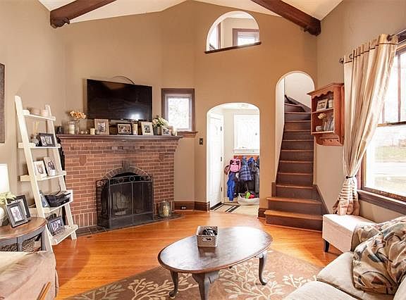 Prime location! Just about a block from Kirkwood Park and 1/2 mile from Downtown Kirkwood! This Cute 3 bed, 1 bath Queen Ann style house oozes with old world charm. Upon stepping into the turret you are met with a light filled entry housing two leaded glass windows. An airy living room highlighted by vaulted ceilings accented with wood beams. Wood steps lead to an indoor juliet balcony with arched opening for looking down on the loves in the living room. Dining room features glass door built-ins and decorative chair rail and molding. French doors lead to a bedroom with a bay window thats currently being used as playroom. Two more bedrooms a full bath and white kitchen round out this Kirkwood one-of-a-kind. Imagine strolling to downtown Kirkwood's many restaurants and shops or taking in the many events and amenities in Kirkwood park just steps from your front door. Perfect for a fixer upper who wants a dynamite location at a bargain.