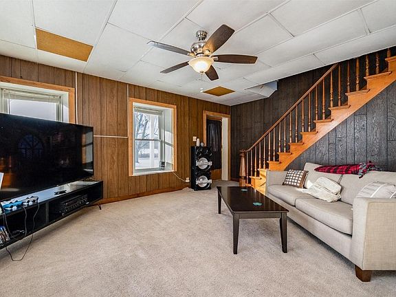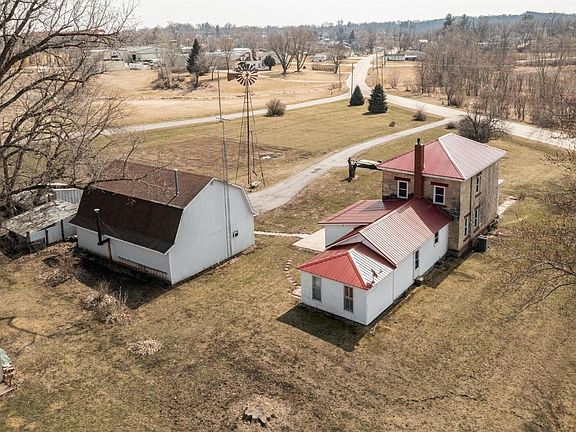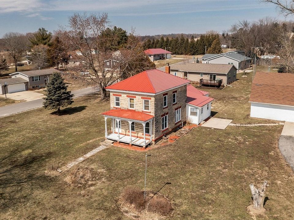 PRICE REDUCTION!! Sitting on 1.1 acres of in town property is a 1850's two story Stone City stone built home. With its beautiful front porch facing the country side this home has three bedrooms and one full bath, dinning room, living room and a large eat in kitchen. A generous two stall garage with a bonus room on second level. Mechanicals are three years old or less, home has an all steel roof.