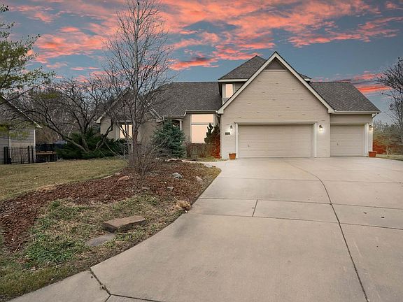 Andover Schools, Sedgwick County Taxes - Welcome to 409 Lancaster Court, a stunning 4,057 sq. ft. 1-1/2 story home, offering the perfect balance of open-concept living and cozy, intimate spaces. Nestled on a private, wooded cul-de-sac lot in the highly desirable Belle Terre subdivision, this 4-bedroom, 3.5-bathroom home is designed for comfortable family living, entertaining, and enjoying the beauty of its serene surroundings. The gracious entry welcomes you into a formal living room that adjoins the dining room, creating a seamless open-concept space with big picture windows that frame stunning views of the wooded lot. Hardwood floors flow throughout the main level, enhancing the home's timeless elegance. The heart of the home is the updated kitchen and hearth room, featuring a pantry, eating bar, two ovens, built-in desk, and a cozy wood-burning fireplace with a fire starter, perfect for gathering with loved ones. The primary suite on the main floor boasts a luxurious ensuite with a whirlpool tub, separate shower, dual sinks, two closets, and a private water closet. Upstairs, the second-floor landing offers flexible space for a playroom, study nook, or home office, along with two generously sized bedrooms connected by a Jack-and-Jill bathroom complete with skylights and ample storage. The basement is an inviting retreat, featuring a large family room with a gas fireplace equipped with thermostat for temperature control, wet bar (including a full-sized refrigerator, dishwasher, sink, and generous cabinetry). The family room also includes a built-in entertainment center and projector (which stays with the home), making it ideal for movie nights. A wine cellar is a unique bonus for enthusiasts. This space could easily serve as a private multi-general living space as there is a basement bedroom as well, and there is plenty of storage space available, too. Another separate basement area is spacious enough for game room accessories - or turn it into a work-out space if you’d like. Step outside to a large, covered patio that overlooks the expansive, private wooded lot, perfect for outdoor entertaining or adding a pool. The home includes an irrigation well and sprinkler system for easy maintenance. Neighborhood amenities include a swimming pool, tennis courts, playground, and jogging paths. This Belle Terre gem won’t last long. Schedule your private showing today!