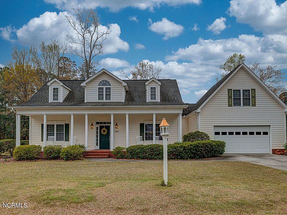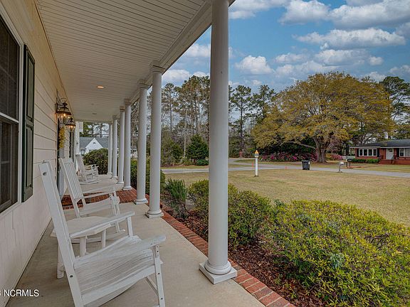 Well built cape cod on large corner lot in charming small town of Burgaw with rocking chair front porch. Thie home features 4 bedrooms with 3 1/2 baths. 4th bedroom is FROG with full bath, large walk in closet with wet bar with sink and space for microwave or small oven which would serve well as a mother in law suite since it has separate entrance from garage. Living room has cathedral ceilings and gas log fireplace and door that opens to back yard. Kitchen has plenty of lovely wood cabinets, built in pantry/cabinet, center island and tile back splash, that is open to cozy, bright breakfast area. Also has a formal dining room with wainscoating.