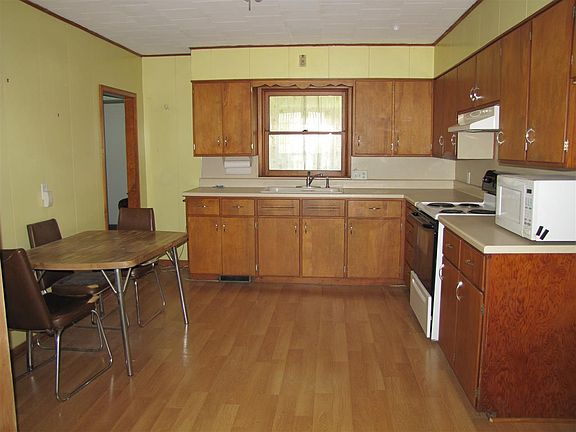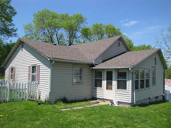 One level house with vinyl siding and a one car detached garage with an open carport section. Wood cabinets in the nice size kitchen. The second bedroom had been converted to an office. Fenced in back yard with access to the garage from the alley. New shingles approximately 2015. Stove, washer, dryer, window ac unit are included but "AS IS" no guarantee.