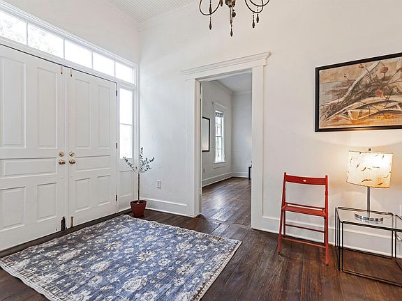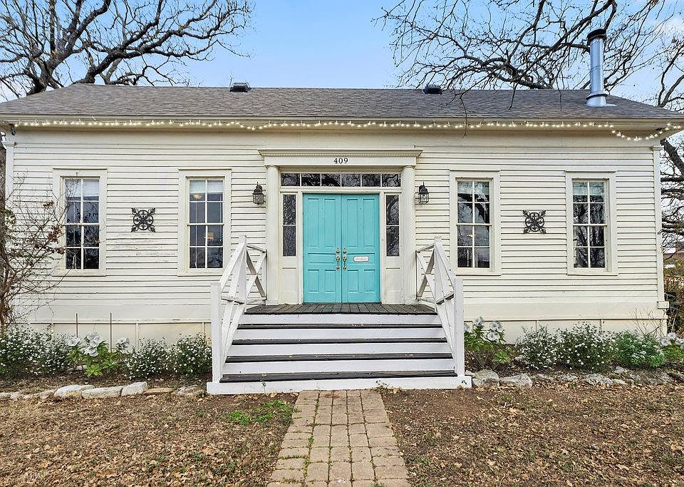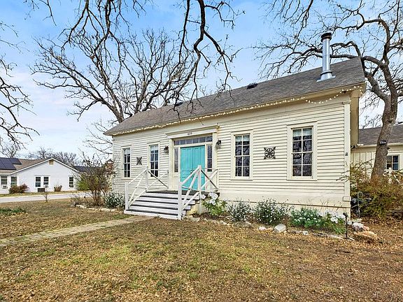 Seize the rare opportunity to own an exceptional 1894 schoolhouse, one of the original homes in Burnet, thoughtfully renovated while preserving its historic charm. Freshly painted interior and upgrades. On a tree lined Main Street with historic homes, and just 4 blocks to an active town square with weekly farmers market and drop off for the Austin Steam Train! Walking distance to coffee shops and dining options. This architectural masterpiece boasts a mix of gabled roof lines and natural materials throughout. Extensive use of wood for shiplap, original hardwood floors, and beadboard ceilings enhances a warm inviting character. Historic glass windows flood the home with natural light, while mature deciduous oaks provide attractive shade. The home offers 2 primary bedrooms, each with en-suite bathroom. Includes a multi-head walk-in shower and oversized jacuzzi tub. Two welcoming foyers lead to a grand living room. With dramatic ceiling height, the space features a raised-hearth wood-burning fireplace for cozy evenings. The farmhouse kitchen blends style and functionality with 6 burner gas stove, flows seamlessly into the dining room and includes a walk-in Butler’s Pantry. A bonus flex room can serve as a home office or hobby room, plus a half-bath for guests and extra-large laundry room add functionality downstairs. Upstairs, the second story opens to a versatile bedroom or flex space with its own full bathroom. The gabled roofline creates a massive 600-square-foot walk-in attic, perfect for storage.