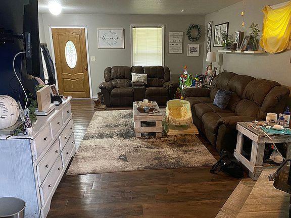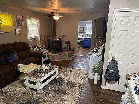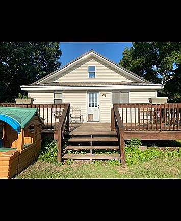 Adorable country home sitting in a great location in town within walking distance of many businesses and just down the road from the school or head out the back gate of the large fenced in yard to the city park. Enjoy the front porch, large back deck and big fenced in backyard great for entertaining and a fantastic place for kids or 4 legged family members. Two bedroom, one bath home with large family room and country kitchen with built in dining bar area. This is a great home for a retiring couple or a first time homeowner. Home has an attic area that could be finished off if needed. Nice metal roof on the home and partial basement has a sump pump. Main bedroom has a door to second bedroom if you have a young child. The main bedroom also has 2 closet areas and plenty of room.