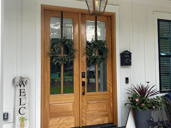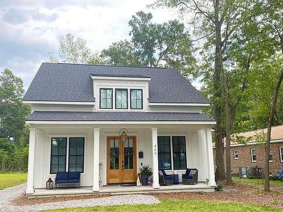 Rare find! Farmhouse cottage within walking distance of restaurants, banks, grocery store & Doty Park playground, pickle ball and tennis courts. No HOA. Attractive exterior is all board and batten. Gorgeous mahogany double front doors, wide front porch and a gas lantern make for great curb appeal. 10' ceilings throughout make this home feel spacious. Open floor plan boasts spacious family room, dining & huge kitchen! Tons of custom made 42'' shaker cabinets, enormous island and farmhouse sink. All lower cabinets have pull-outs. All drawers have soft close. Leathered granite countertops. Gas range w/convection oven & a microwave drawer. The primary bedroom is spacious and light filled. Primary bath has dual sinks, decorative ceramic tile and an oversized walk in shower. Pocket door leadsto an adjacent walk-in closet with shelving. The second bedroom has a walk-in closet as well. Second bath has a tub/shower combo. Step out back to a large screened porch with a ceiling fan for comfort. Pulldown attic access stairs, high pitch on the roof allows for standing up in attic area. Gas tankless hot water heater. Luxury vinyl barnwood flooring throughout except bathrooms, which are ceramic tile. Beautiful farmhouse lighting. Main rooms have over-sized cove molding. 8' interior 6 panel doors throughout, all with black hardware. Nest thermostat and keyless entry front door lock. Just a golf cart ride away to the farmers market or downtown Summerville. If you've been waiting for a Summerville cottage to go on the market...here it is!