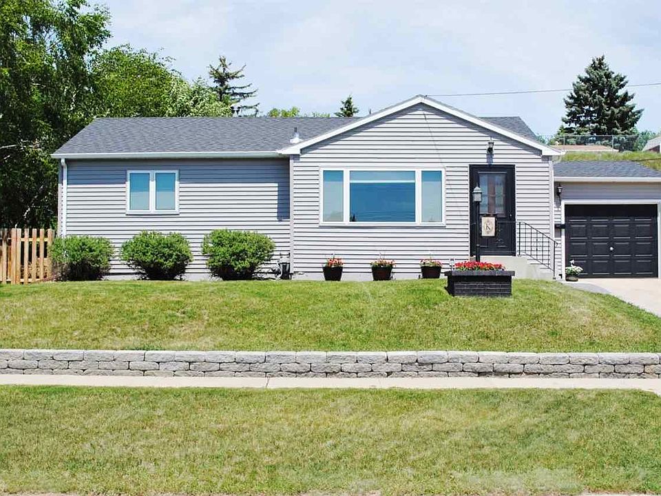 Charming ranch style home located in NE Minot. This 2 bedroom, 1.75 bath has been beautifully renovated; windows, siding, roof, soffit, and gutters were replaced in 2014 and almost all new flooring throughout. Upon entering you will find a spacious living room with tons of natural light from the large picture window. The kitchen has newer SS appliances, new ceramic tile flooring and countertops. The kitchen area is open to the dining room with direct access to the patio. There are 2 bedrooms on the main floor and a full bath which was recently renovated. The basement’s unique layout leads itself to fit many different wants and needs. The family room could also be considered a 3rd non-egress bedroom complete with fireplace and bar area. Off this room you will find a recently remodeled half bathroom and close by you will find a shower located in the large laundry room. The basement is complete with 2 large storage rooms a new homeowner could use for an office or space to work on a multitude of different hobbies. Outside you will find the garage space, 1 car wide but double deep! Also located on the property are 2 sheds, a full garden that was just planted, a cement patio for your outdoor enjoyment and flowers that adorn the fully fenced in yard.