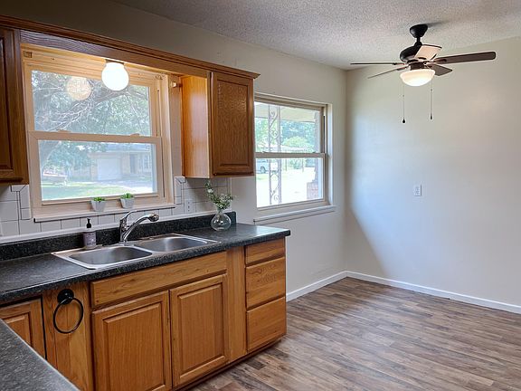 Move in ready 3 bed/1 bath house. House features large eat in kitchen with new appliances. Spacious living room with French doors leading to fantastic deck, perfect for grilling or entertaining. Wood floors throughout main living areas. Carpet in bedrooms. Bathroom has double vanity sinks. Fresh paint inside & out. Updated plumbing. Deep, single car garage with direct access to fully fenced backyard. Short drive to HWY 75, parks, restaurants, and shopping. Schools: Wilson Elementary, Madison Middle School, Bartlesville High School. Must pass credit & background check. Applications are a non refundable $29 fee. 2 pet MAXIMUM. Non refundable deposit of $300 per pet. NO SMOKING. Renter responsible for all utilities and lawn maintenance.