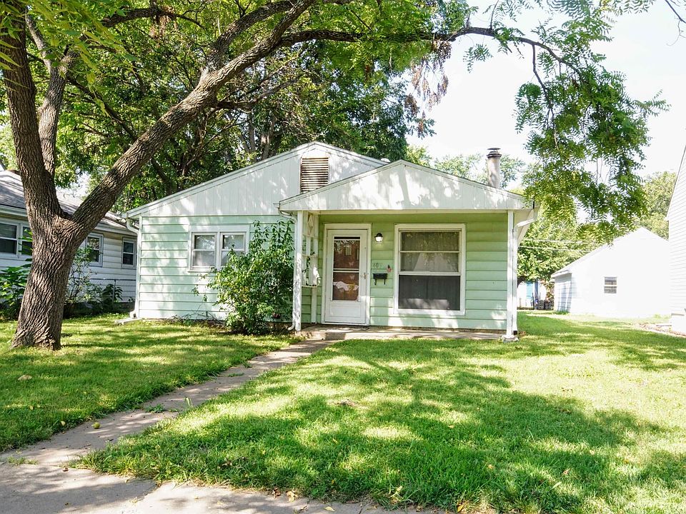 Oakland Ranch, slab, 3 bedrooms and 1 bath. Separate laundry area, newer HVAC and water heater. New gutters on north and south side of home. Oversized, and good shape, 1 car + garage with parking/patio slab beside the garage and another slab between the garage and the two bonus covered porch rooms not included in square footage, that would be good for storage, plants, etc. Also walking distance to area Elementary and Middle School. Enjoy Oakland in Topeka, Kansas.
