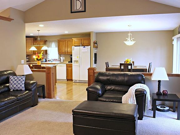 This custom built Ranch is located in a family friendly neighborhood. There is plenty to see in this spacious home with over 2,600 sq ft of finished living space. The open floor plan features a huge great room with vaulted ceilings and fireplace. The kitchen features a large island with a breakfast bar and hardwood flooring throughout. Sliding glass doors lead to the deck with access to the large backyard and lower patio area. The Master Suite includes bathroom with dual vanity, walk in shower, and huge walk in closet. The main floor also has two additional bedrooms and a half bath. 1,000 finished square feet in the lower level adds plenty of living space and with a large 4th bedroom and another full bath. Almost 600 sq ft remain unfinished for plenty of storage. A 5th bedroom or private home office could be easily added to the unfinished area.