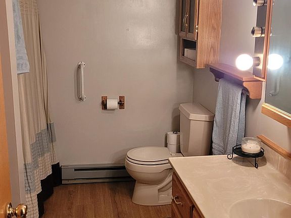 Riverview Estate - Immaculate gardens dot the groomed lawn in this over-sized 1BR(+)/1BA 2nd floor condo on the river's edge. New windows, a sliding glass door and a new deck grace this end unit. An elevator, garage and commons gathering room are additional amenities for the complex. Wander the grounds and take advantage of bench seating to enjoy a spectacular view of the new riffle dam. You are within easy walking distance of fine dining, an aromatic coffee shop, library and the best darn bakery in the north country.