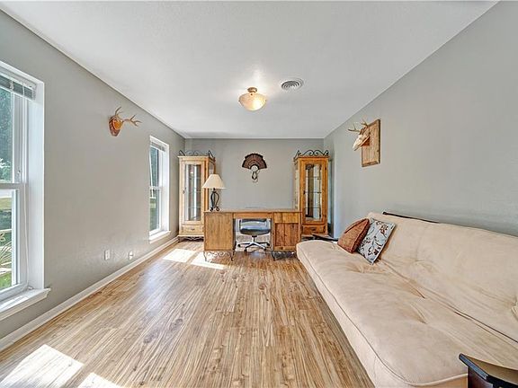 Hunt from your Backyard! Come check out the gorgeous acreage surrounding this home that includes 4 bedrooms, 2 baths, an office area, and a bonus room perfect for a gameroom or second living area! Situated among mature trees that offer shade and fruit, you'll love the circular driveway for parking and the fire pit area that is perfect for late night entertaining! Additional features include granite countertops, updated windows, newer roof, storage buildings with electricity, and newer gutters. Deals like this one won't last long, so schedule your showing today!