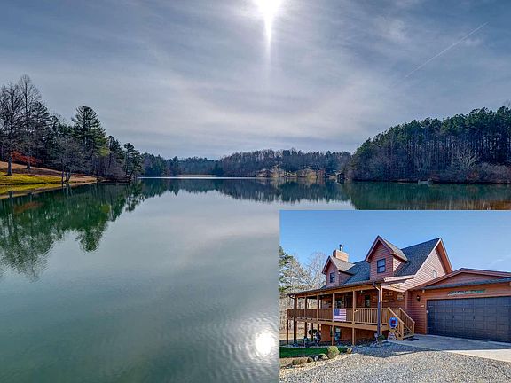 A private lake in your own fenced in backyard! Grab your kayak and head out or catch some rays on the dock! Custom 2 bedroom 2.5 bath oversized chalet with covered porches on two sides. Stone gas log fireplace. Cathedral ceilings & exposed beams. Wood flooring throughout the main level. Hugh master upstairs with separate loft area. Smaller master on main. Whirlpool tub. Attached double carport. This private man made lake is spring fed and is the home of an abundance of fish and wildlife. Make this your HOME today! Alarm system hooked up to house and roof is only 3 years old!