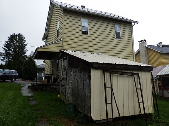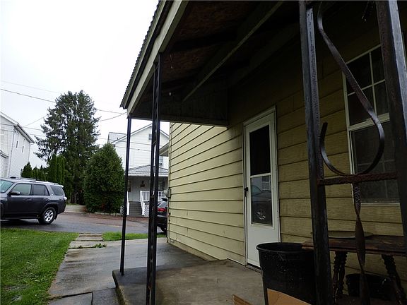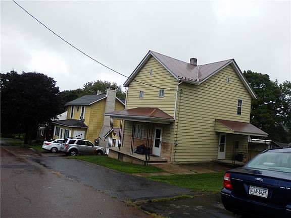 2 story aluminum sided home with covered front porch and side porches. Large formal dining room, nice open kitchen. 3 bedroom on second floor and full bath. Newer Steele roof and hot water tank. Large attic for storage. Off street parking in front of the house. With a little tlc for cosmetic things would make a great house but could move in now. Heating system is working good. Nice woodwork on the stairway. Basement is damp. Nice foyer area.