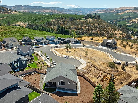 Nestled on a spacious 0.29-acre lot, this beautifully built 2022 home offers the perfect blend of contemporary design and natural beauty. Situated in a quiet neighborhood of new homes, you'll enjoy peaceful living with views of both Mt. Hood and Mt. Adams. Relax and entertain in style with a covered back patio and or landscaped yard, or unwind on the cozy front porch looking out at Mt Hood. The property is fully fenced for added security, giving you a peace of mind. Inside, the home features a bright, open layout with soaring ceilings and a modern color palette. Luxury vinyl plank flooring flows seamlessly throughout the space, creating a sophisticated and low-maintenance environment. The kitchen is a chef’s dream, complete with quartz countertops, stainless steel appliances, and plenty of storage and prep space. Additional highlights include an oversized garage with ample room for your vehicles and gear, plus a large storage area beneath the home for all your seasonal or outdoor equipment. A heat pump ensures comfort year-round, keeping the temperature just right no matter the season.Located just a stone's throw from a local park, this home offers convenient access to outdoor recreation while still being close to all the amenities of The Dalles. Whether you’re looking for a peaceful retreat or a base for adventure, this modern gem offers it all.