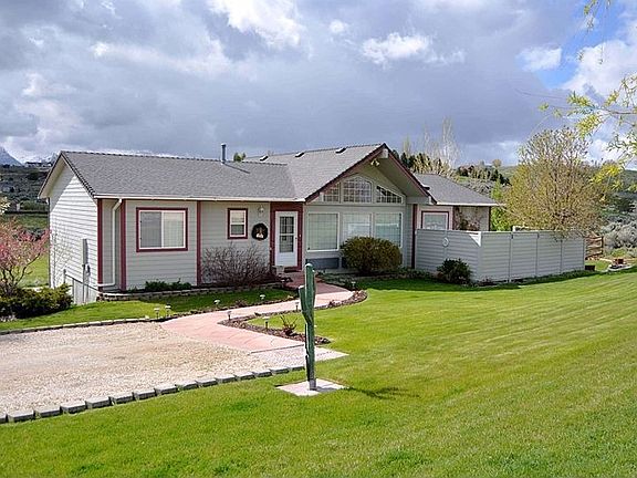This lovely 2,564 s.f. 4 bedroom, 3 bath home features awesome views, golf course location & an open floor plan with split bedrooms on the main level. The great room has a vaulted ceiling & is loaded with windows front to back. The nicely appointed kitchen with a garden window has Corian countertops, an island decked out with a prep sink & pot shelves abound in this home for all of your treasures. The master suite has a bay window with doors that open to the exterior deck, double sinks, jetted tub, skylight, tiled shower & double closets. The property backs up to the 10th hole on the golf course & boasts a spectacular manicured yard with a covered patio, large party deck with propane lamps, fenced area & another patio area fenced for privacy. The yard has sprinklers in the back only & has a bully barn for storage.