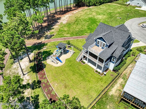 Three stories of lake front property. Make this 5 Bedroom plus bonus, 3.5 Bath, in the Gated Waterfront Community of Summerhouse on Everett Bay yours today! A perfect blend of Southern Charm and Coastal Life style that is built on the shore of Spicer Lake. The first floor features an In-law suite to rave about; boasting 9 ft ceilings, an oversized living room or rec room, full bath and separate bedroom. The main level has LVP flooring, a stone fireplace, built in book cases, gourmet kitchen with combo dining area, a huge deck, flex/office detailed with wainscoting, and master's quarters with en-suite bathroom. Main floor is also where you will find the Laundry room with utility sink and folding counter. On the top floor are three more bedrooms all with ceiling fans and walk-in closets, a full bath, and a generously sized bonus room that could be used as a 6th bedroom, walk-in closet and a balcony with views of the lake. The kitchen features extended granite island, luxury cabinets, large pantry with auto light, and breakfast bar. Enjoy the serene lake views from the living room, master bedroom, and extended back patio and decks. The master retreat boasts 2 large walk-in closets and a master bath you'll never want to leave; featuring separate vanities, tiled soaker tub, and matching separate walk-in shower with glass doors. The two single bay garages offers space for parking and a dedicated electric car outlet plug for convenience. This home has fresh paint on exterior, interior and is in like-new condition. Summerhouse on Everett Bay features 6 scenic lakes, Resort-style community pool with lazy river, two tennis courts, breathtaking clubhouse, boat launch with direct access to the intracoastal waterway including day dock, pier, on-site boat storage, fitness room, more. Close to Wilmington, topsail and military bases.