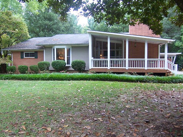 Unique open floor plan, hardwoods, awesome updated baths, covered porch, deck, in-ground pool, fenced yard, storage building, gorgeous lot.